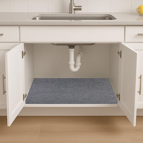 Premium Light Gray 24 in. D x 59 in. L Solid Slip Resistant, Waterproof Under Sink Mat Drawer and Shelf Liners (1- Pack)