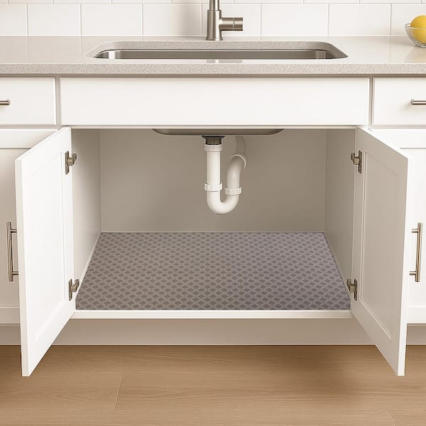 Premium Taupe 24 in. D x 59 in. L Solid Slip Resistant, Waterproof Under Sink Mat Drawer and Shelf Liner (1- Pack)