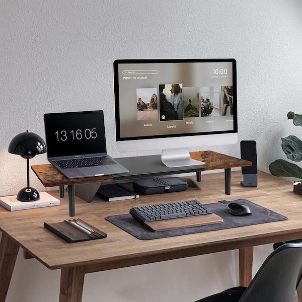 Dual Monitor Stand Riser Adjustable Length 32-40 Inch Desktop Organizer for Computer/Laptop/PC/Printer/TV Brown