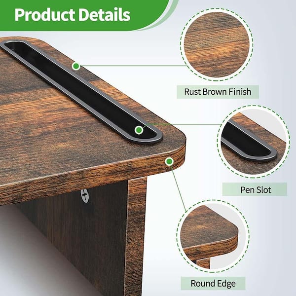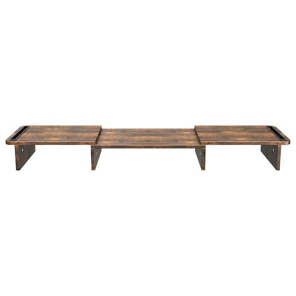 Dual Monitor Stand Riser Adjustable Length and Angle Wood Riser for Desk with Storage Space Rust Brown Large
