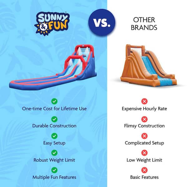 Dual Splash Blue Inflatable Water Slide Park and Blow up Splash Pool