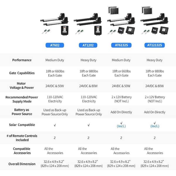 Dual Swing Gate Opener Medium Duty Automatic Gate Motor for Double Swing Gates Up to 18 ft. per Arm Electric Driveway