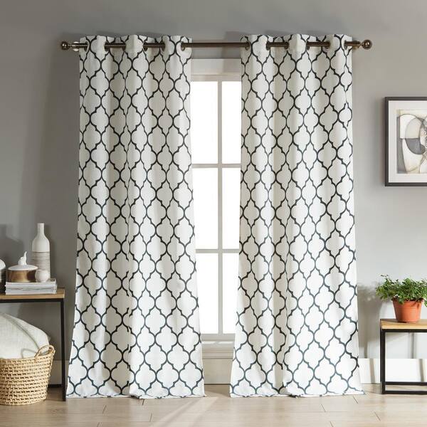 Stone Blue Trellis Grommet Room Darkening Curtain - 38 in. W x 96 in. L (Set of 2)