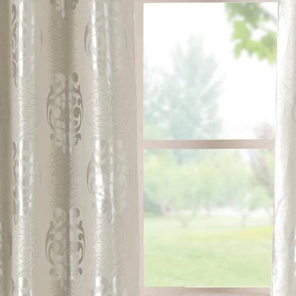Taupe Damask Thermal Blackout Curtain - 36 in. W x 84 in. L (Set of 2)