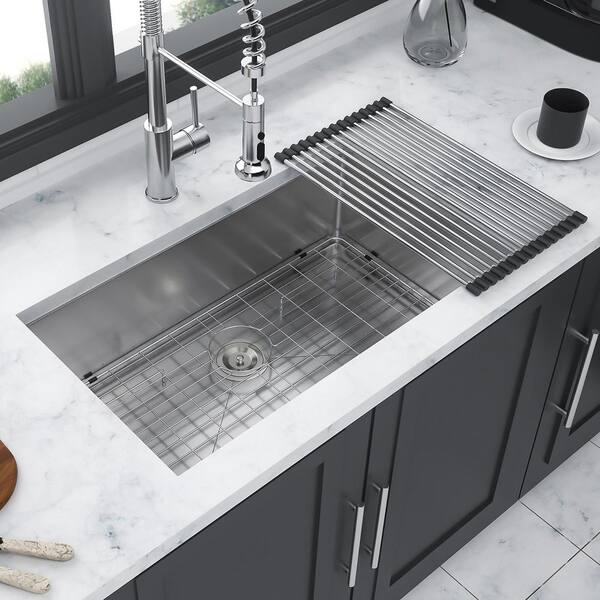 33 in. Undermount Single Bowl 16-Gauge Brushed Nickel Stainless Steel Kitchen Sink with Bottom Grids