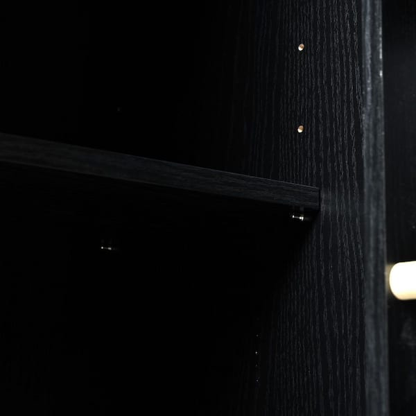 Black MDF Kitchen Cart with Drop Leaf and Power Outlet