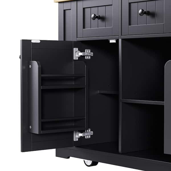 Black MDF Wood 53 in. Kitchen Island with Drop Leaf and Power Outlet