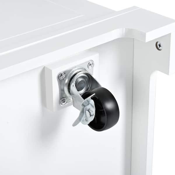 White Rubber Wood Kitchen Cart with Power Outlet and Adjustable Shelf
