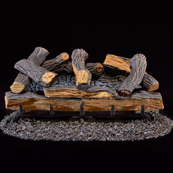• Includes 9 ceramic logs that are hand painted with real wood