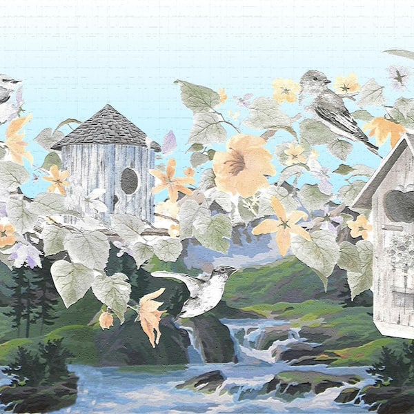 Falkirk Dandy II Green Blue Birds and Flowers Floral Peel and Stick Wallpaper Border