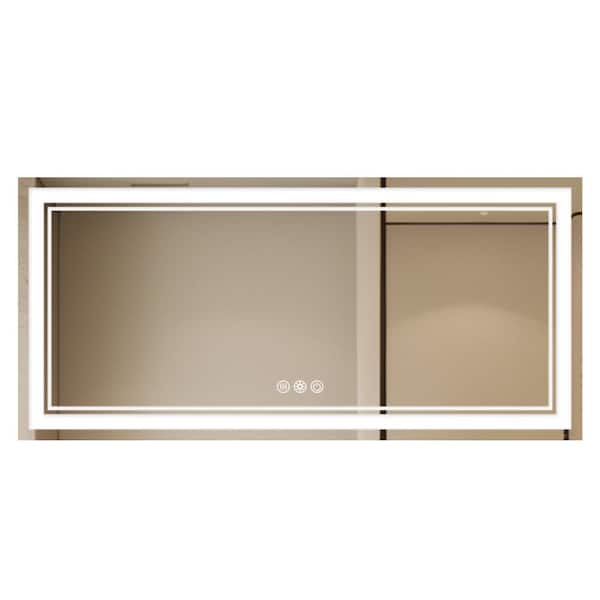 60 in. W. x 28 in H Rectangular Frameless Wall Mount 3-Colors Dimmable Anti-Fog LED Bathroom Vanity Mirror with Memory