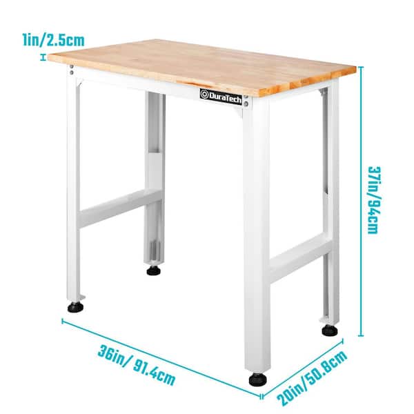 36 in. W x 20 in. D Solid Wood Top Workbench Table in White