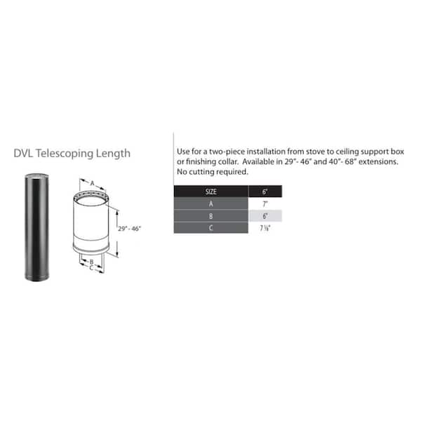 Model DVL Double Wall Stove Pipe 6in. Diameter x 29in. to 46in. Telescoping Pipe Length