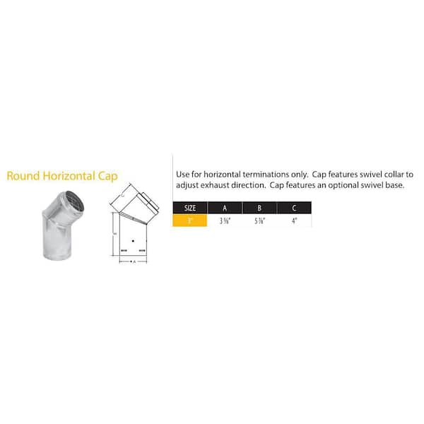 PelletVent for Multi-Fuel 3in. Diameter Round Horizontal Cap