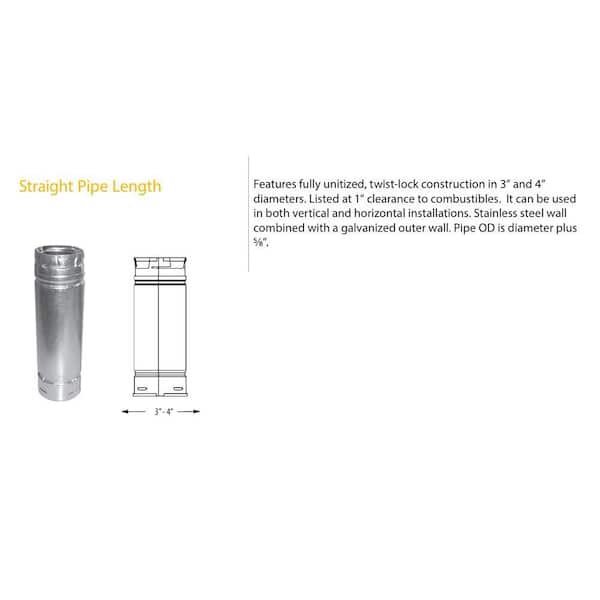 PelletVent for Multi-Fuel 3in. Diameter X 12in. Straight Pipe Length