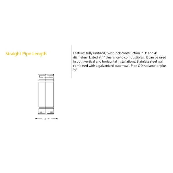 PelletVent for Multi-Fuel 4in. Diameter X 60in. Straight Pipe Length, Black