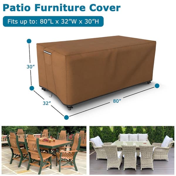 Durable Waterproof 80 in. L x 32 in. W x 30 in. H Brown Patio Table and Chair Set Cover Outdoor Furniture Cover