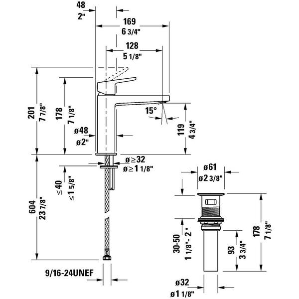 DuraSquare Single Handle Single Hole Bathroom Faucet with Drain Kit Included Included in Chrome