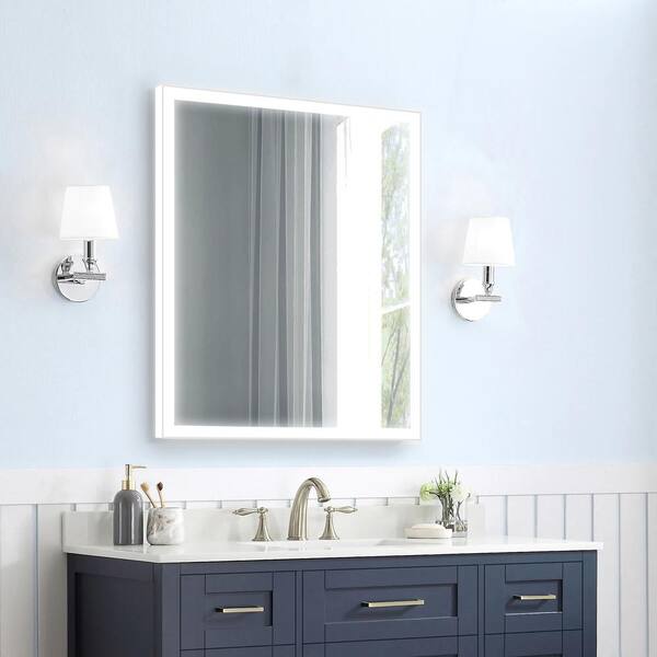 Dwayn 28 in. W x 36 in. H Large Rectangular Frameless Anti-Fog Wall Bathroom Vanity Mirror in Silver