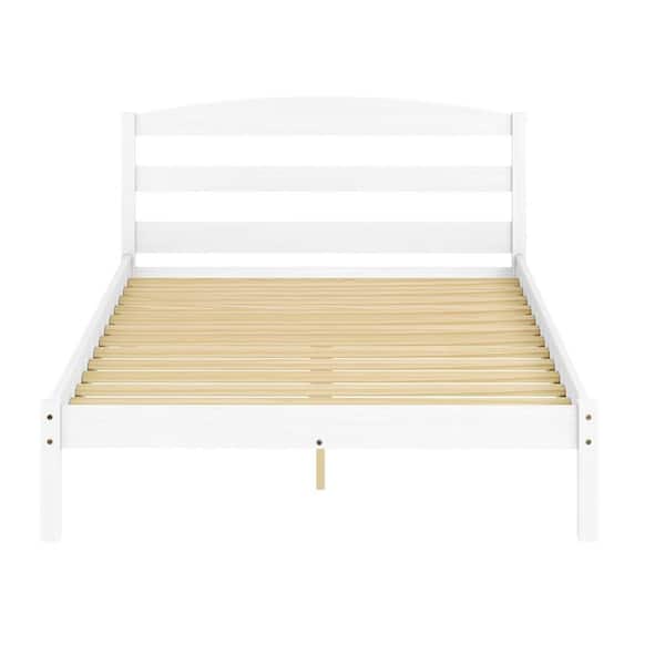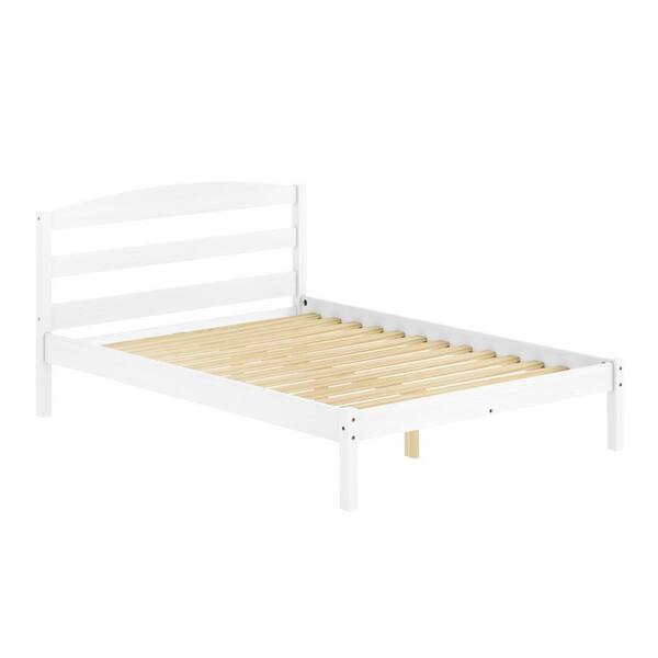 Alexander White Pine Wood Frame, Full Platform Bed with Headboard and Wooden Slat Support