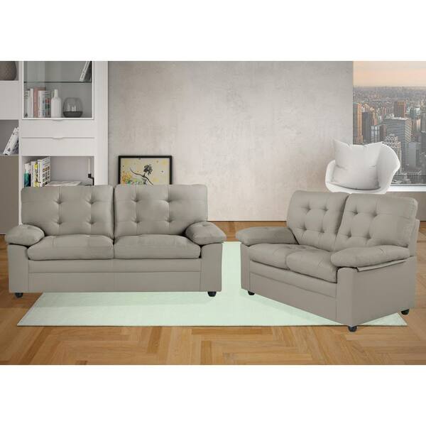 Grayson 2-Piece Grey Faux Leather Living Room Set