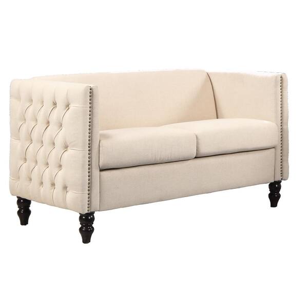 Juliett 53.54 in. Beige Polyester 2-Seat Loveseat with Nailheads and Tufted Arms