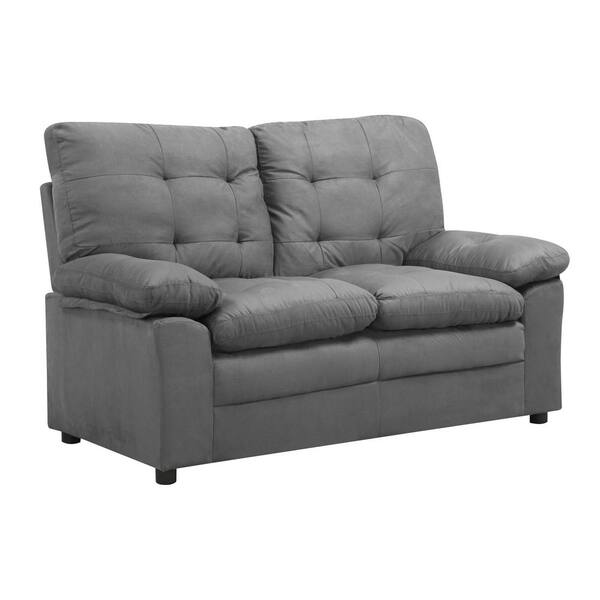 Juliette 60 in. Grey Solid Microfiber 2-Seat Loveseat with Tufted Back