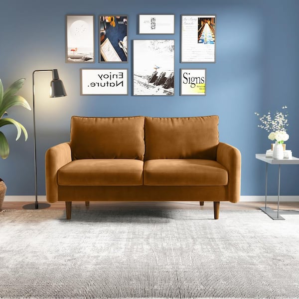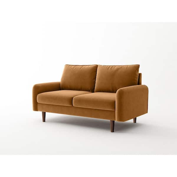 Weston 58 in. Velvet Round Arm Apartment Rectangle 2-Seat Loveseat -Sienna
