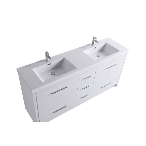 VSB Sintered Stone 70.75 in. W x 19.75 in. D x 35 in. H Double Sinks Freestanding Bath Vanity in White with Countertop