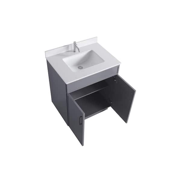 VSC 30in. W x 22in. D x 35in. H Single Sink Freestanding Bath Vanity in Gray with White Cultured Marble Top