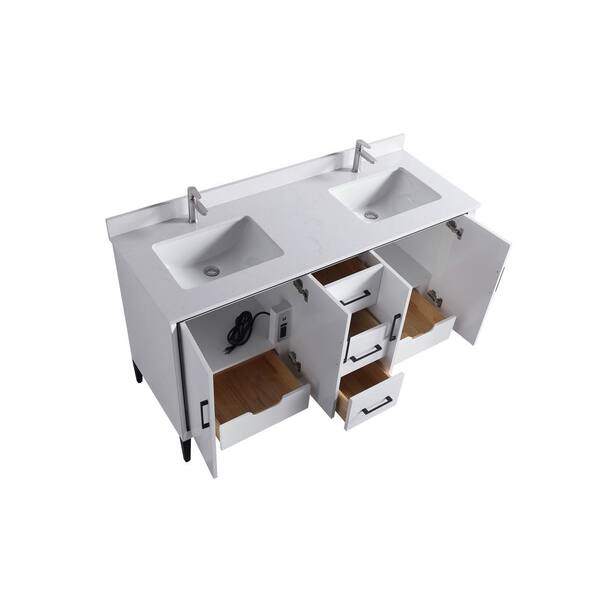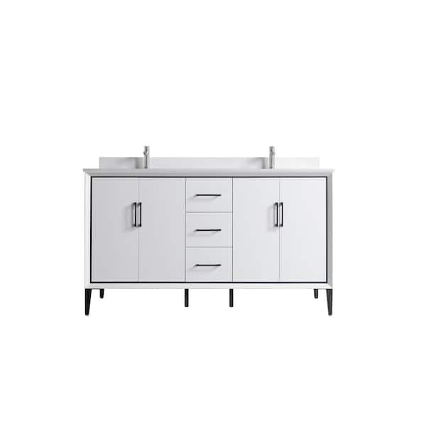 VSD 60in. W x 22in. D x 35in. H Double Sink Freestanding Bath Vanity in White with White Cultured Marble Top