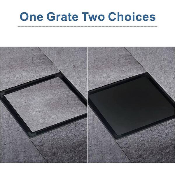 6 in. W X 6 in. D Black Square Shower Drain Cover, Stainless Steel 6-In. Bathroom Shower Drainage Pipe