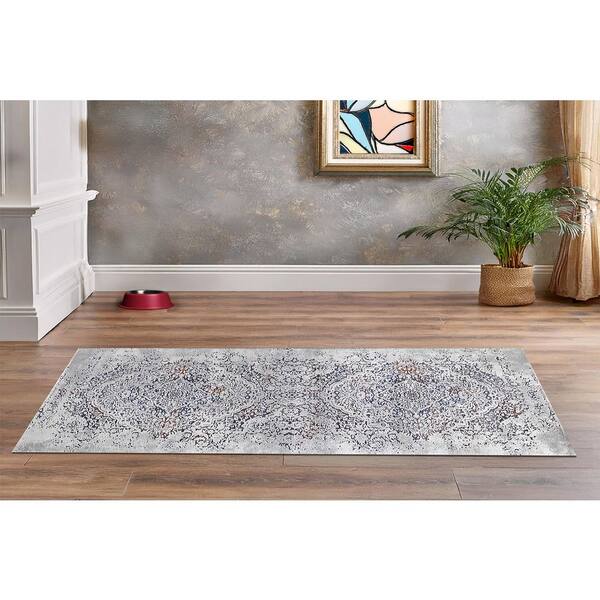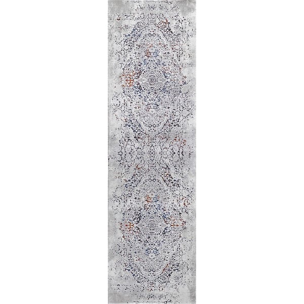 Astro Grey/Blue/Multi 2 ft. 2 in. X 7 ft. 7 in. Oriental Indoor Area Rug