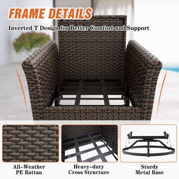 2-Color Brown Wicker Outdoor Rocking Chair Patio Swivel Chair with Beige Cushions, Wide Armrest (2-Pack)