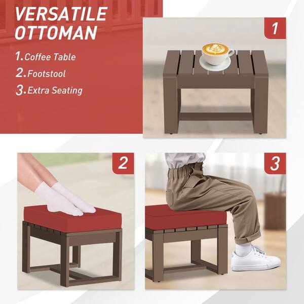 4-Pieces Cedar Wood Wicker Outdoor Patio Conversation Set with Red Cushions, 2-Lounge Chairs, 2-Ottomans