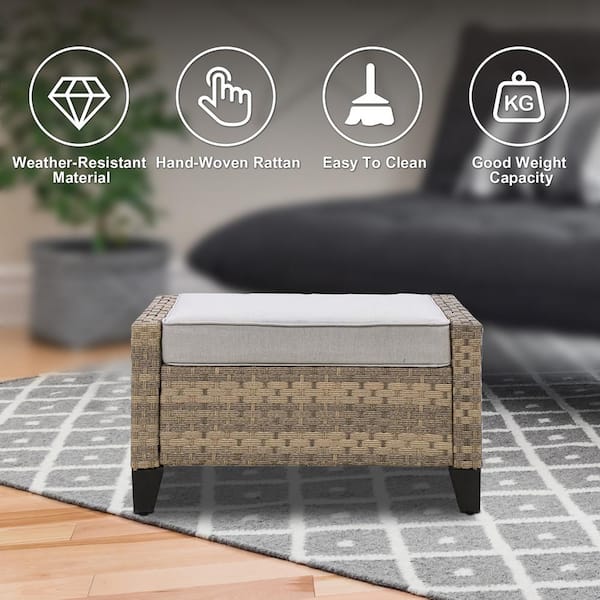 5-Piece Wicker Outdoor Patio Conversation Set with Gray Cushions, Ottomans and Side Table