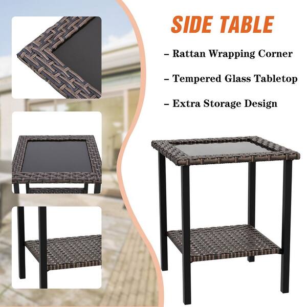 • Includes 3 chairs, 1 side table, 2 ottomans, and 4 cushions
