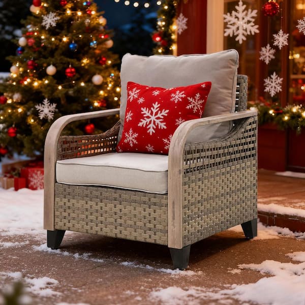 Patio Wicker Outdoor Lounge Chair with Gray Cushions