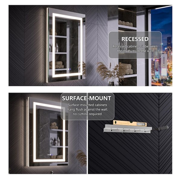24 in. W x 36 in. H Rectangular Silver Aluminum Recessed/Surface Mount Left Hinge Dimmable Medicine Cabinet with Mirror