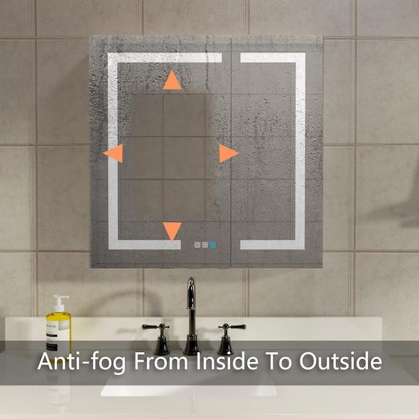 30 in. W x 30 in. H Rectangular Silver Aluminum Defogged Surface/Recessed Mount Dimmable Medicine Cabinet with Mirror
