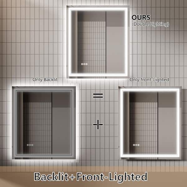 30 in. W x 36 in. H Rectangular Frameless Anti-Fog Wall Dimmable Backlit Dual LED Bathroom Vanity Mirror in Silver