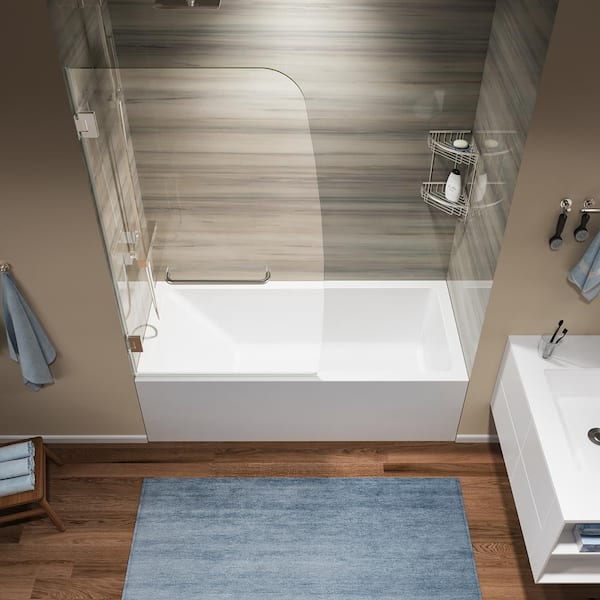 34 in. W x 58 in. H Pivot Frameless Tub Door in Brushed Nickel with 5/16 in. (8 mm) Tempered Clear Glass