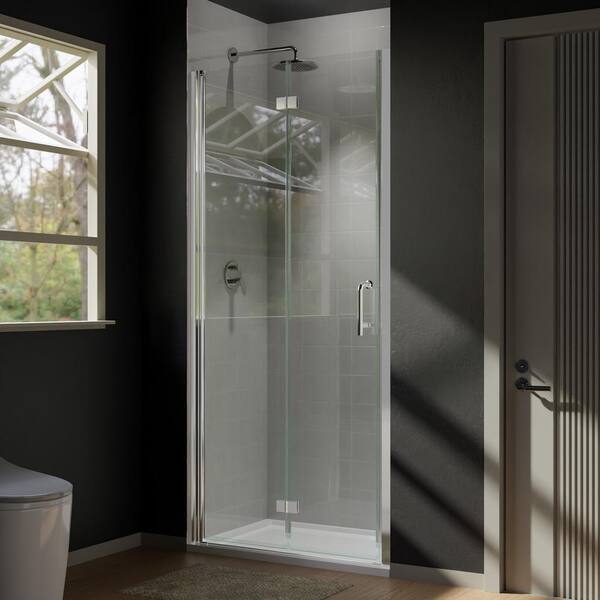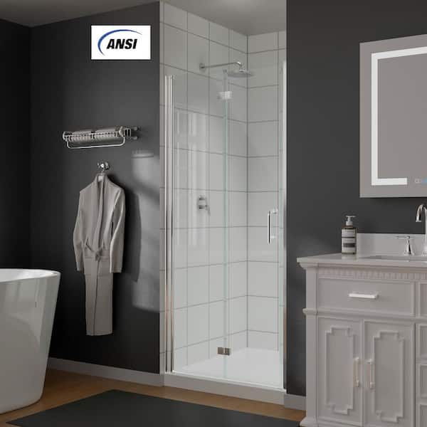 34 to 35-3/8 in. W x 72 in. H Bi-Fold Semi-Frameless Shower Doors in Chrome with Tempered Clear Glass