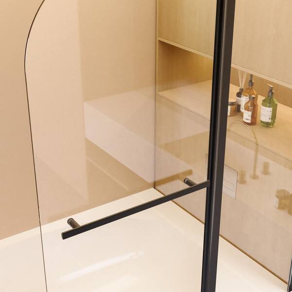 43.15 in. W x 58 in. H Pivot Semi-Frameless Tub Door in Matte Black with Tempered Clear Glass