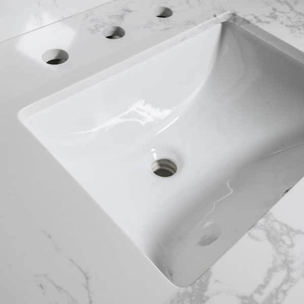 43 in. W x 22 in D Engineered Stone Composite White Rectangular Single Sink Vanity Top in Calacatta White
