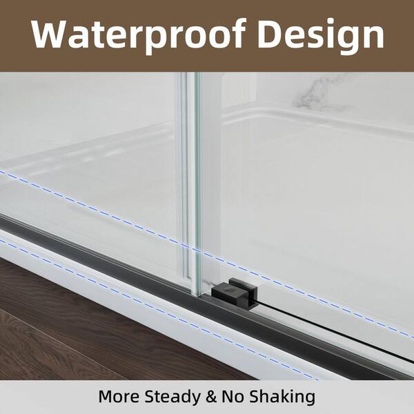 56-60 in. W x 75 in. H Semi-Frameless Single Sliding Shower Door in Matte Black with Easy-Clean Glass and Towel Bar