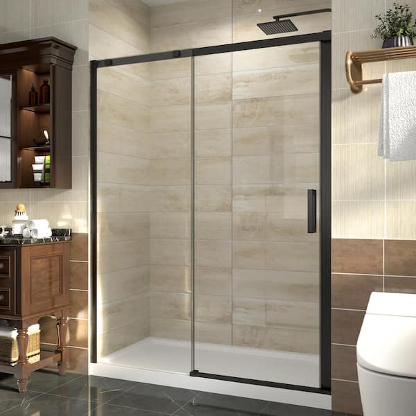 56 in. to 60 in. W x 74 in. H Sliding Semi-Frameless Shower Door in Matte Black Finish with 5/16 in.Tempered Clear Glass