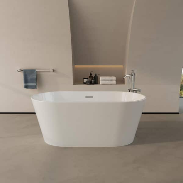 59 in. x 30 in. Freestanding Acrylic Soaking Bathtub with Center Chrome Drain & Slotted Overflow in Glossy White