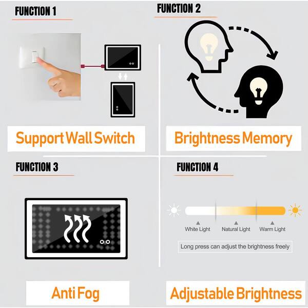 Classic 48 in. W x 36 in. H Large Rectangular Frameless Anti-Fog LED Light Wall Bathroom Vanity Mirror Front Light