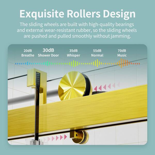 Reversible 56-60 in. W x 76 in. H Frameless Sliding Shower Door in Brushed Gold with Tempered Clear Glass and Soft-Close